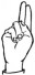 На ћирилици написано ДИМИТРИЈЕ ГАРОЊА састоји се из 15 слова [?]. Исписано ћириличном једноручном азбуком за глувонеме: